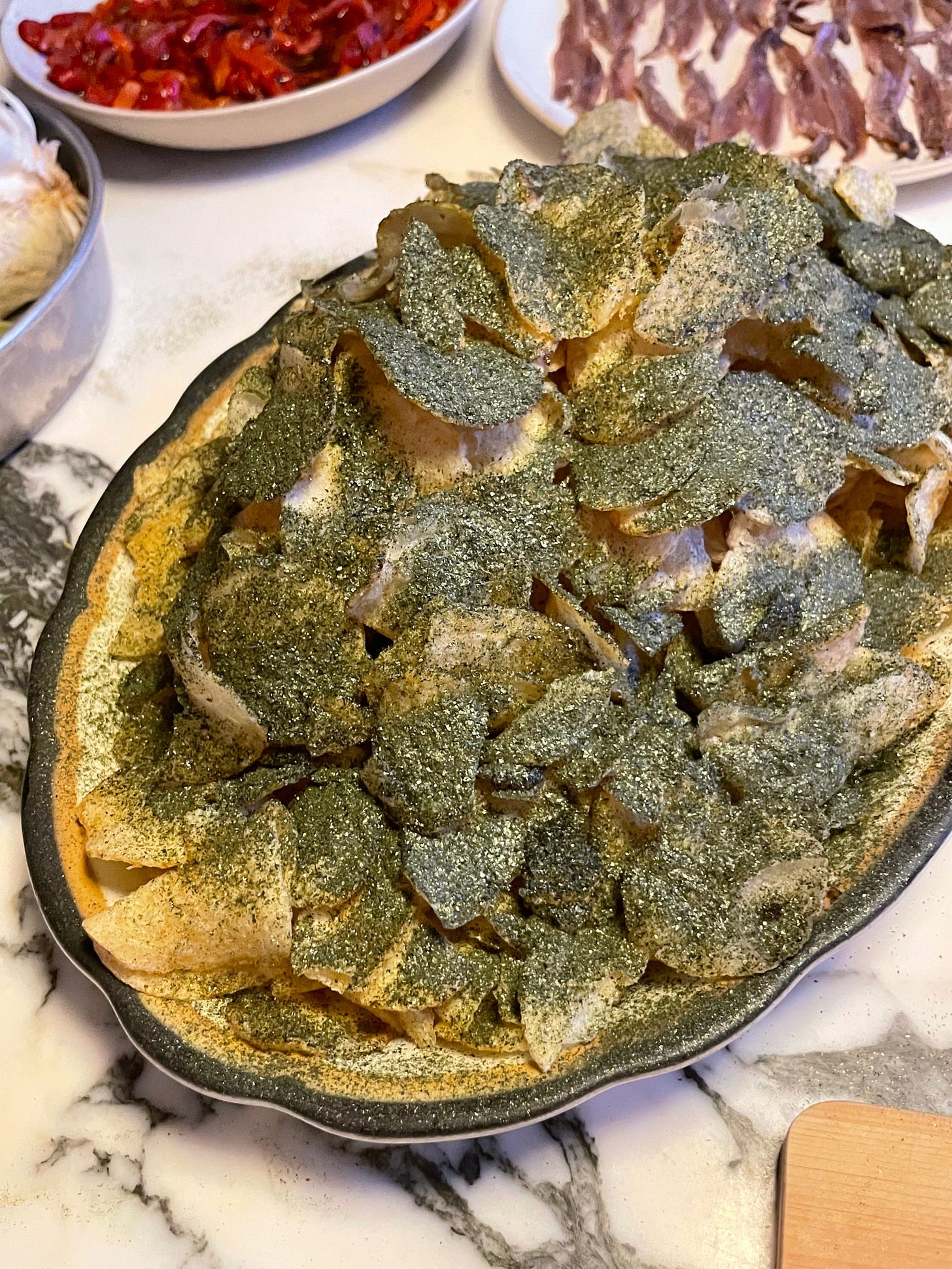 🌊🥔 Nori Dust + Potato Chips. Those seaweed sheets in your kid’s lunch can be ground up and dusted on kettle chips.